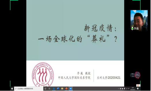师生做了题为《新冠疫情:一场全球化的‘葬礼’?》的线上学术讲座。陈小鼎教授主持了本次讲座,院内外200余名师生通过腾讯会议线上直播平台聆听了讲座。