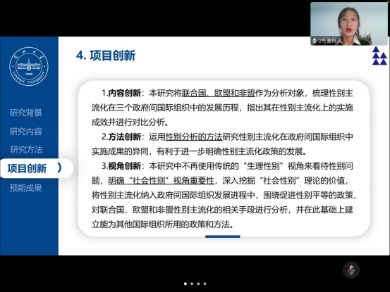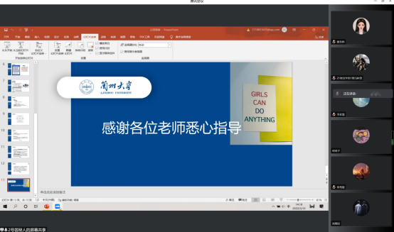 此次共有七个项目参加答辩。各位答辩人需在五分钟内就项目的背景、内容、方向等方面进行简要介绍。评委老师就各负责人汇报内容,指出各个项目的优势所在,并给予相应的赞许与肯定,同时也从各个项目在研究方向、方法和内容等方面的不足提出针对性的意见与建议。答辩结束后由评委老师们就七个答辩项目进行线上交流探讨。至此,本次国创立项答辩活动圆满结束。