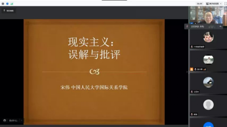 做题为《现实主义:误解与批判》的线上讲座,期间,宋老师对不同的现实主义理论做了批判性的讲解,使同学们对现实主义的具体理论有了进一步的认识。