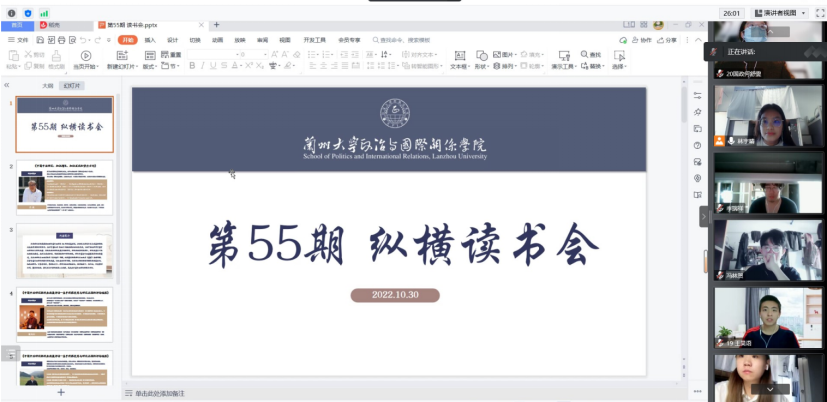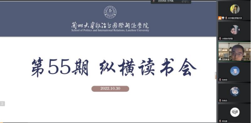 中亚研究所第55期本科生“纵横读书会”以腾讯会议形式举行。本期读书会以“中亚研究现状”为主要内容,旨在帮助同学们了解当前中国中亚研究现状。学院王术森老师和十八位本科生一起参与了读书会。本次读书会主要的阅读材料是《中国中亚研究:知识增长、知识发现和努力方向》(肖斌,载《俄罗斯东欧中亚研究》2019年第5期)和《中国中亚研究30年来进展评估--基于观察视角与研究主题的评估框架》(曾向红、杨恕,载《国际观察》2020年第6期)。