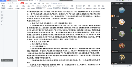 第十六期“青简”读书会准时开始。本次读书会采取线上的方式进行,由黎晓锋同学主持,来自政国院、文学院的18名同学参加了本次读书会。本次读书会承接上期的阅读内容,聚焦《资治通鉴•魏纪》魏明帝太和五年(231年)至魏明帝青龙二年(234年)之间的内容。