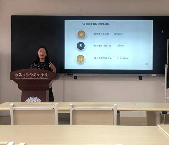 师资博士后李亮博士在大学生活动中心举办了题为《上海合作组织发展的六个问题》的精彩讲座。