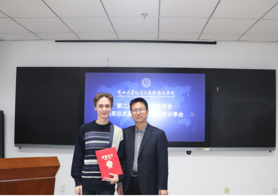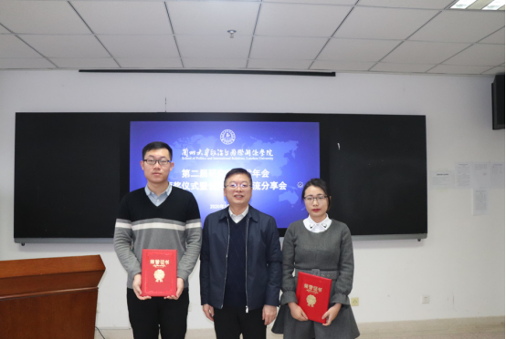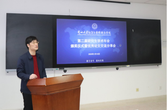 第二届研究生学术年会颁奖仪式暨优秀论文交流分享会在学生活动中心604举行,学院党委书记姚志海、院长汪金国、副院长曾向红、杨辰博副教授、陈一一副教授、姜潭博士和全体硕士研究生参加了本次活动。