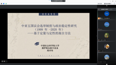 开幕式后,论坛分为“中亚问题研究”、“俄罗斯东欧问题研究”、“上合组织与地区问题”三个分论坛同步进行。在“中亚问题研究”分论坛中,李芳玲、石越洋、韩彦雄、张彤彤、陶安杰、连丹丹、叶玉虎、尉锦波、刘奇、周卓玮等同学以“美国国际开发署对中亚五国援助实践分析——动机、过程及其影响”、“中国与乌兹别克斯坦非传统安全合作的驱动因素”、“命运共同体视阈下中吉抗疫合作分析”“中国对中亚国家援助动机与效果分析——基于点-轴理论的视角”、“扎帕洛夫时期吉尔吉斯斯坦政治转型分析”、“吉尔吉斯斯坦反对派”“20世纪初苏联引进美国工程师进行中亚灌溉工程建设的研究”、“吉尔吉斯斯坦为何反复爆发‘革命’?——基于与乌兹别克斯坦的比较”、“哈萨克斯坦人道主义救援行动‘茹桑’:成效与困境”、“中亚五国议会选举制度与政治稳定性研究(1999-2020年)——基于定量与定性的混合方法”为题宣读了论文。笔趣阁