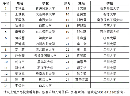 名夏令营营员。现将名单公布如下: