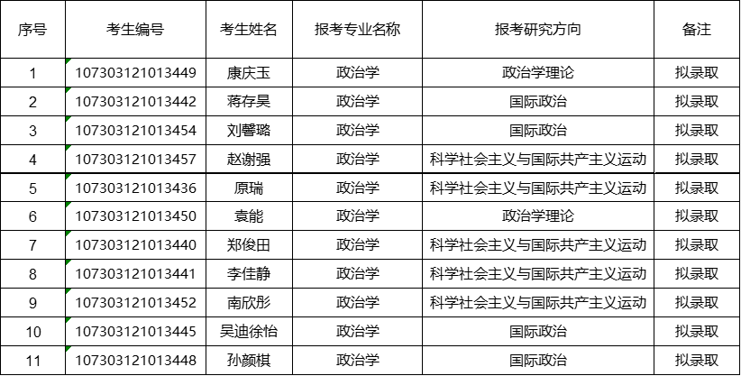 一志愿拟录取名单: