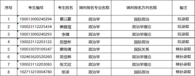 调剂拟录取及候补名单: