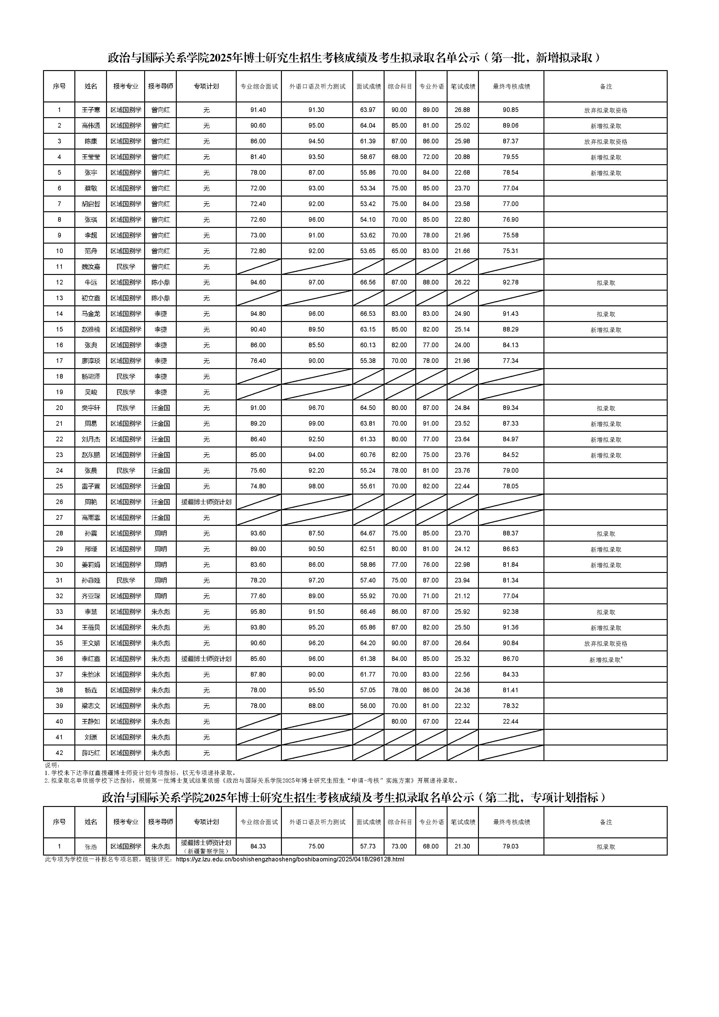 【博士招生】笔趣阁 2025年博士研究生招生考核成绩及考生拟录取名单公示(第一批新增拟录取与第二批专项计划)