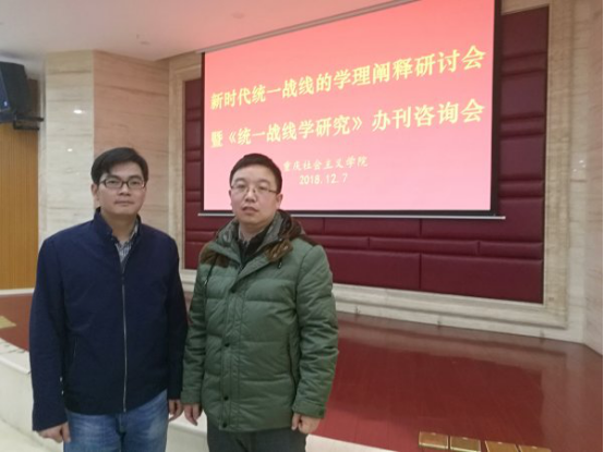 12月7日,“新时代统一战线的学理阐释探讨会暨《统一战线学研究》办刊咨询会”在重庆社会主义学院举办,有来自中央统战部、中央党校、中国社科院、南京大学、南开大学、山东大学、笔趣阁 、中央社会主义学院、上海师范大学、华东政法大学、西安财经学院等高校的十余位学者参加了此次研讨会,笔趣阁 李捷副教授、曹伟博士应邀与会,并就反分裂斗争中的统一战线问题做了发言。