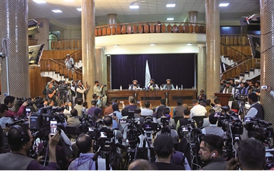 出席塔利班进入喀布尔后举行的首次记者会。新华社发