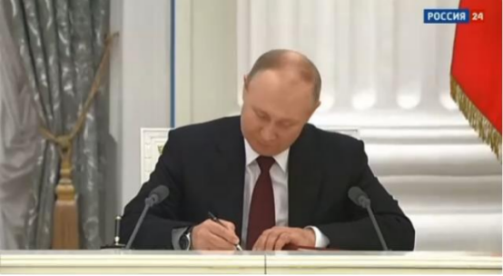 (2月21日,普京签署承认“顿涅茨克人民共和国”和关于承认“卢甘斯克人民共和国”的命令等文件,