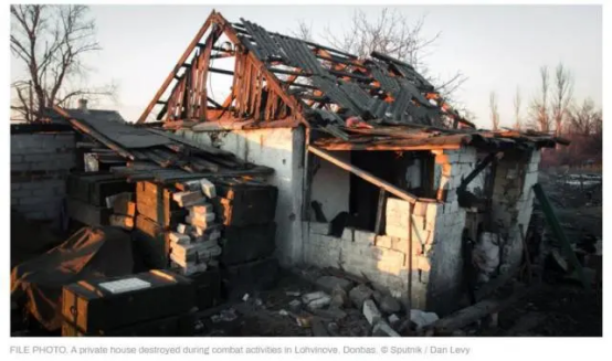 (在顿巴斯冲突中被毁的房屋图源:俄卫星通讯社)