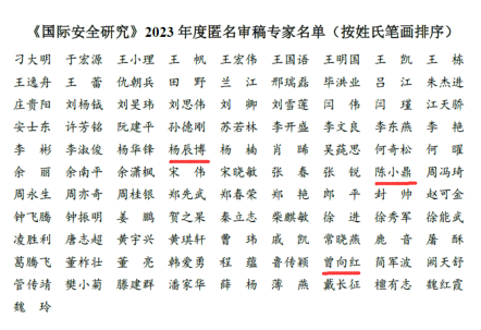 曾向红教授、陈小鼎教授和杨辰博副教授担任《国际安全研究》2023年度匿名审稿专家。