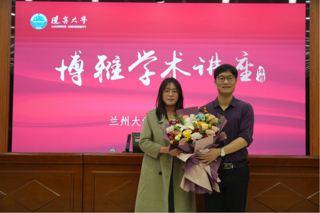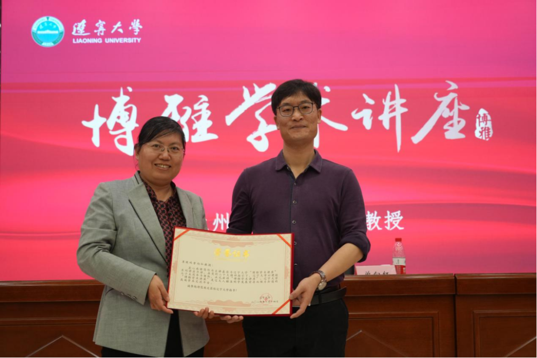 讲座结束后,辽宁大学社会科学研究院院长李艳枝院长为曾向红教授颁发了“博雅学术讲座”纪念证书,辽宁大学国际经济政治学院学生代表为曾向红教授献花致敬。