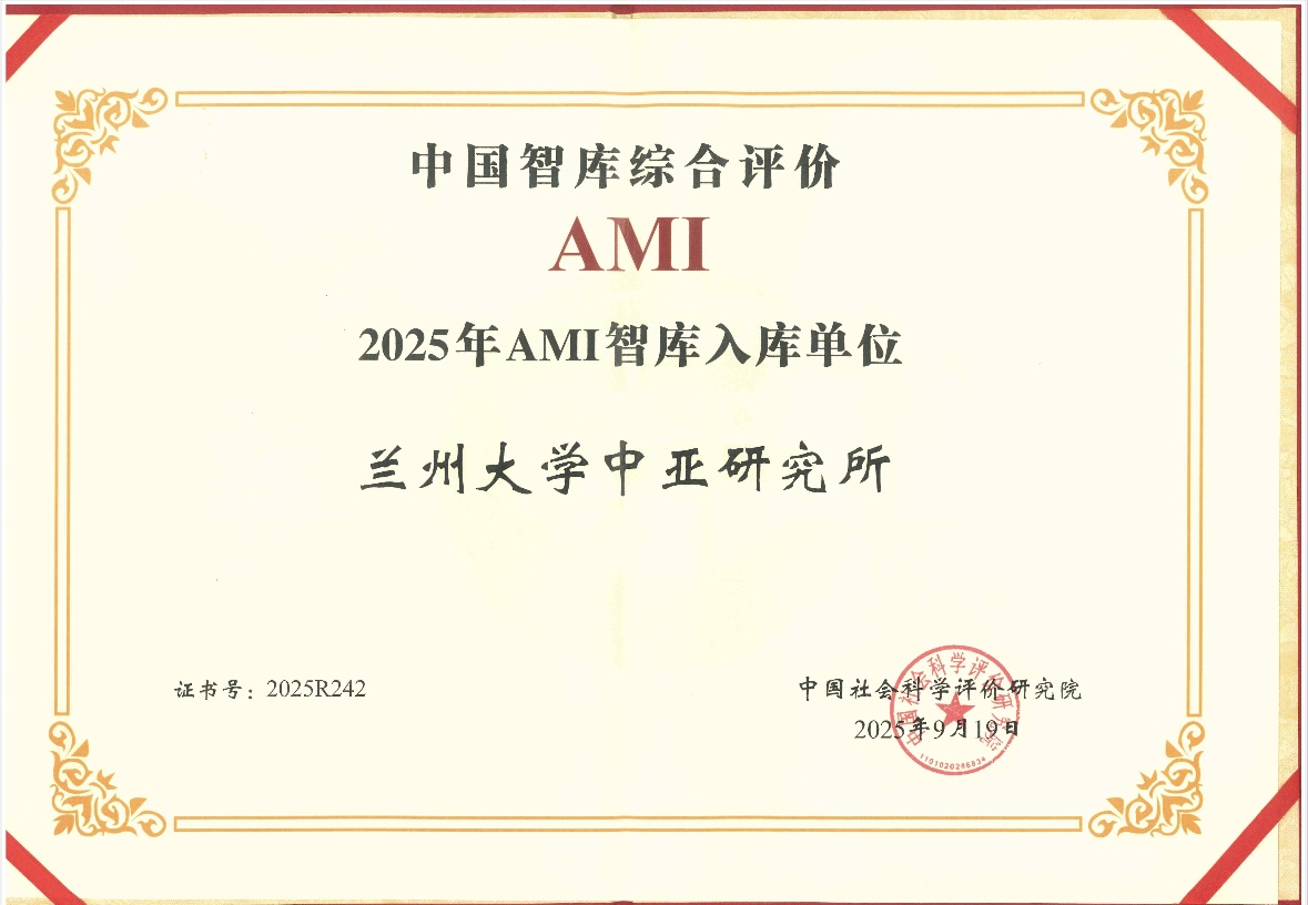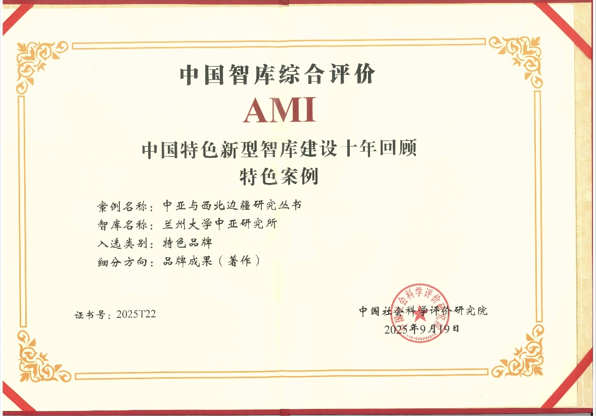 中亚研究所成功入选“2025年AMI智库入库单位”,其申报的 “中亚与西北边疆研究丛书” 同时获评 “中国特色新型智库建设十周年回顾特色案例”,成为本次评选中甘肃高校智库的突出代表。