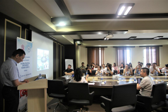 -格迪克大学暑期交流活动的核心内容。中国驻土耳其伊斯坦布尔总领事馆副总领事钟洪糯、领事杨蕴、复旦大学国际问题研究院副教授马斌、亚美尼亚中国-欧亚政治与战略研究委员会主任麦赫·萨哈扬(Mher Sahakyan)、伊斯坦布尔大学中文系系主任阿尤布·撒勒塔史(EyupSaritas)教授、土中文化协会副会长穆斯塔法·卡斯勒(Mustafa karsli)、格迪克大学市政工程系助理教授默特·托伦(Mert Tolon)、国际关系系主任苏哈·阿塔图尔教授和多名教师以及交流团全体成员参加论坛。