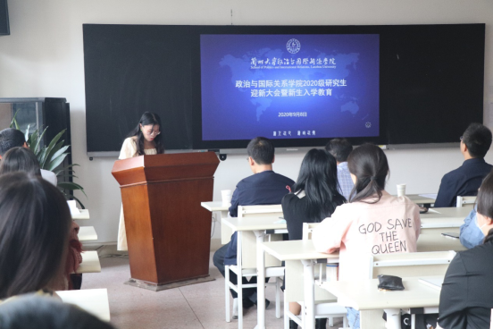紧接着,老生代表和新生代表相继发言。2019级曹佳鲁同学作为高年级学生代表发言。他对新生即将开启兰大学习生活表示祝贺,并结合自身经历,畅谈理想与现实,希冀师弟师妹们坚定信念,逐梦前行,在兰大政国院共赴一场浪漫的学海之旅。2020级新生代表李兴同学发言。作为兰大政国院的本科生和地地道道的西北妹子,李兴同学感慨颇多,发言中凝聚了作为一名兰大人的骄傲与自豪,以及继续做自强不息、独树一帜的兰大人的坚定与果敢。2020级新生代表邓仕琴同学发言。她表示,同学们已经完成了从本科生到研究生的蜕变,理应牢记研究生身份,踏实研究学问,兼备勤奋、主动、合作等关键要素。