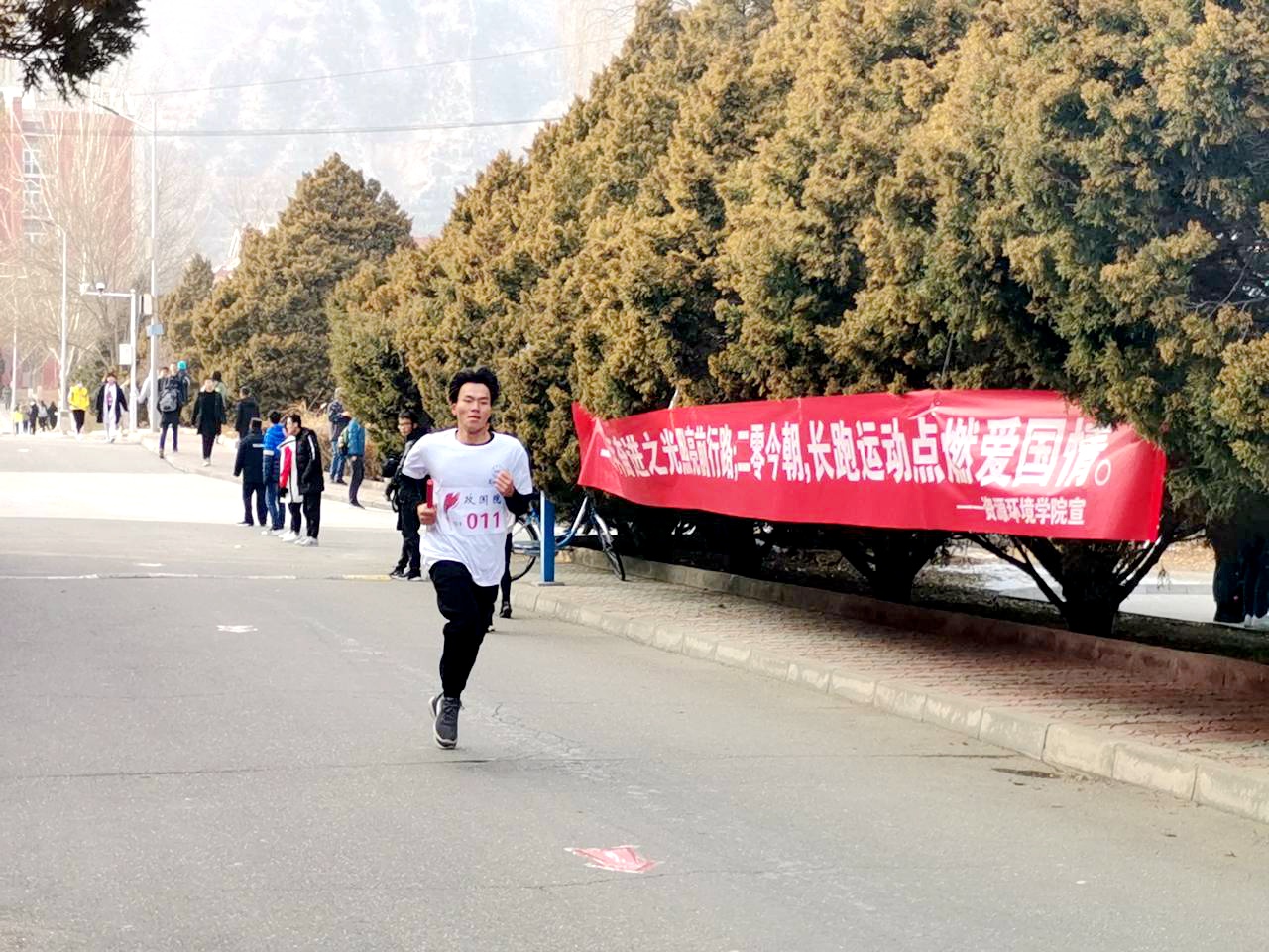 长跑队员们情绪高昂、奋力前行;场下的同学积极呐喊、加油助威。激烈的比赛在一个多小时的竞争与角逐中落下帷幕。