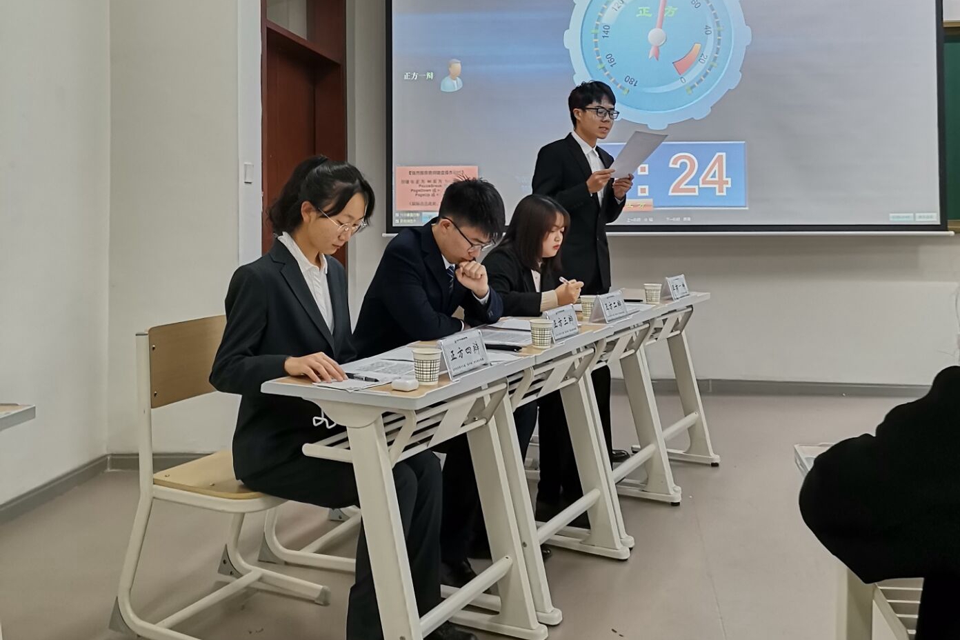 辩论研究中心协力举办的第十二届“英才杯”辩论赛半决赛于第二教学楼A307正式举行。