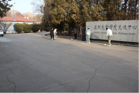 青年志愿者协会成员对天山堂与学术交流中心附近区域进行了清扫与整洁工作。