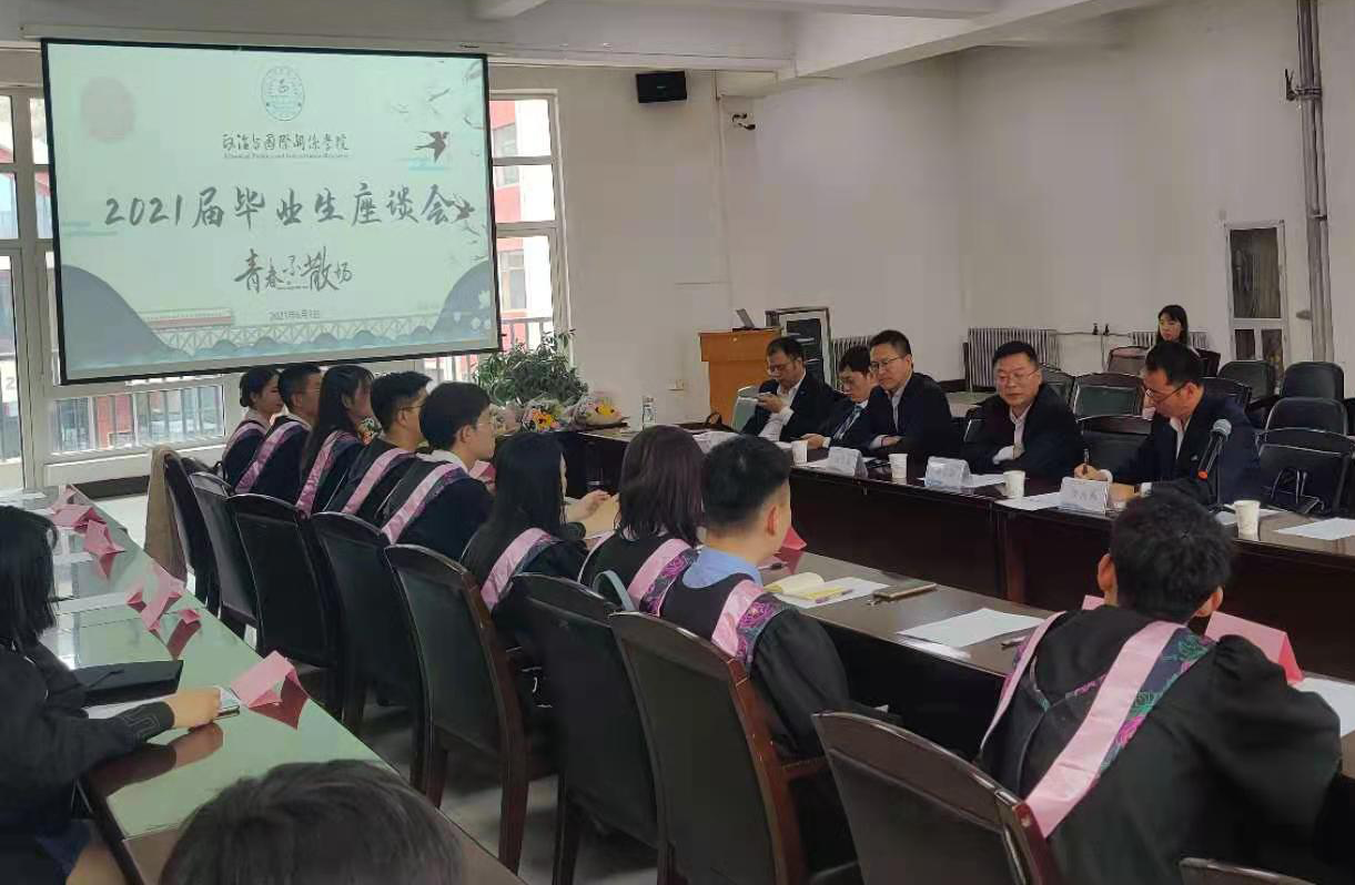2021届毕业生座谈会在榆中校区行政楼二楼会议室举行。学院党委书记姚志海、院长汪金国、副院长曾向红、陈小鼎出席会议,会议由党委副书记贾海燕主持,2021届毕业生参加了会议。