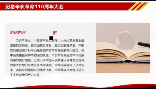 于线上开展以“弘扬辛亥革命精神,汇聚民族复兴动力—深入学习贯彻习近平总书记在纪念辛亥革命110周年大会上重要讲话”为主题的团日活动。