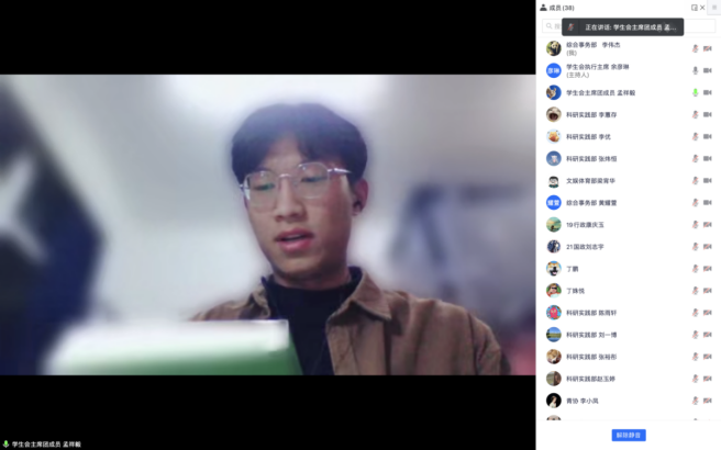 学生会于线上开展集体培训,团委与青协的工作人员也参加了本次培训。本次培训由学生会执行主席余彦琳主持,围绕《习近平与大学生朋友们》一书开展学习。