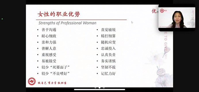 本次“女性职场线上讲座” 面向女大学生群体,针对女大学生们对女性职场的好奇与困惑,用一堂生动的志愿公益课传授了职场女性在就业与工作中的技巧与智慧,对同学们未来的职场生活起到了良好的指导作用。