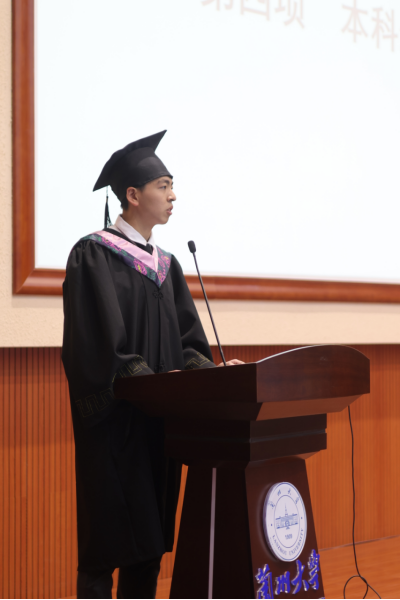 院长汪金国教授代表学院对于各位即将开启新征程的2023届毕业生在本科或硕士期间所取得的成绩表示肯定,并对各位毕业生及其父母送上美好的祝愿。院长汪金国教授勉励各位毕业生在未来的学习、工作和生活中真正做到“格物、致知、诚意、正心、修身、齐家、治国、平天下”,希望各位未来的从政者能够为民谋发展、育人者能够为民添人才、治学者能够为民增智慧、经营者能够为民谋福利。此外,院长汪金国教授还赠予毕业生“远、近、高、低”四个字,希望同学们能够在未来的人生道路上时刻秉持眼光远、目光高、待人近、姿态低的为人处世之道。