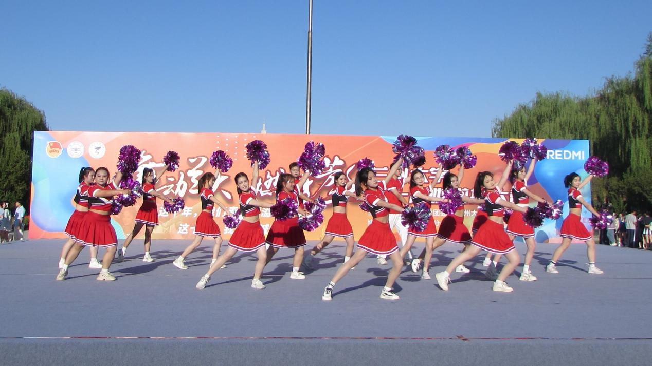 16名学子组成的啦啦操代表队以饱满的热情和精彩的表演亮相赛场,展现学院积极向上的青春风貌。