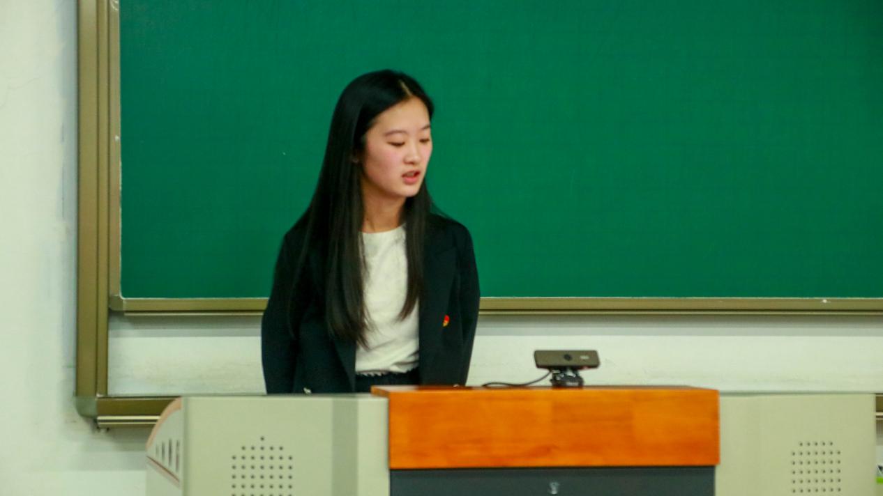 李雪儿宣布新一届学生会主席团成员和青年志愿者协会理事长名单。