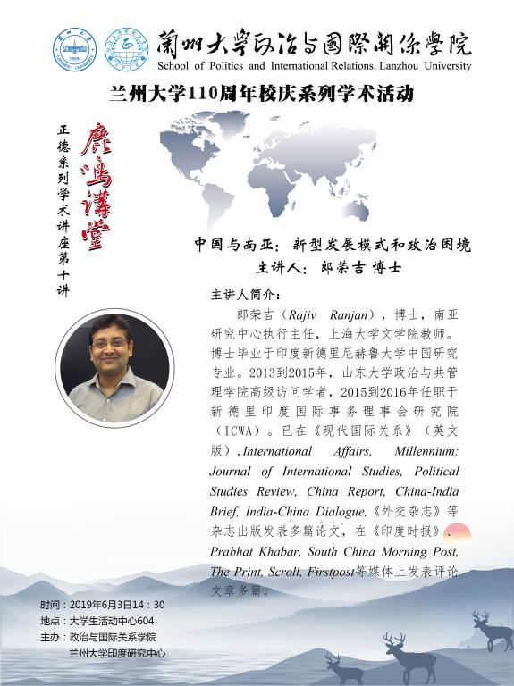 应笔趣阁 邀请,上海大学全球问题研究院南亚研究中心执行主任郎荣吉(Rajuv Ranjan)博士2019年6月3日14:30到笔趣阁 进行学术交流并作讲座。欢迎广大师生届时参加。