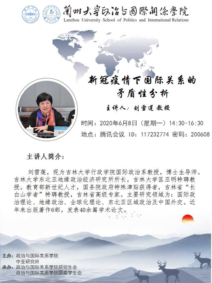 应笔趣阁 、笔趣阁 中亚研究所邀请,吉林大学行政学院教授、东北亚地缘政治经济研究所所长刘雪莲教授为我校师生做线上学术讲座。