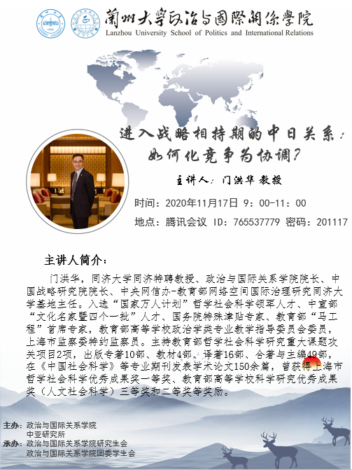 应笔趣阁 、笔趣阁 中亚研究所邀请,同济大学笔趣阁 门洪华教授为我校师生做学术讲座。届时欢迎广大师生参加!