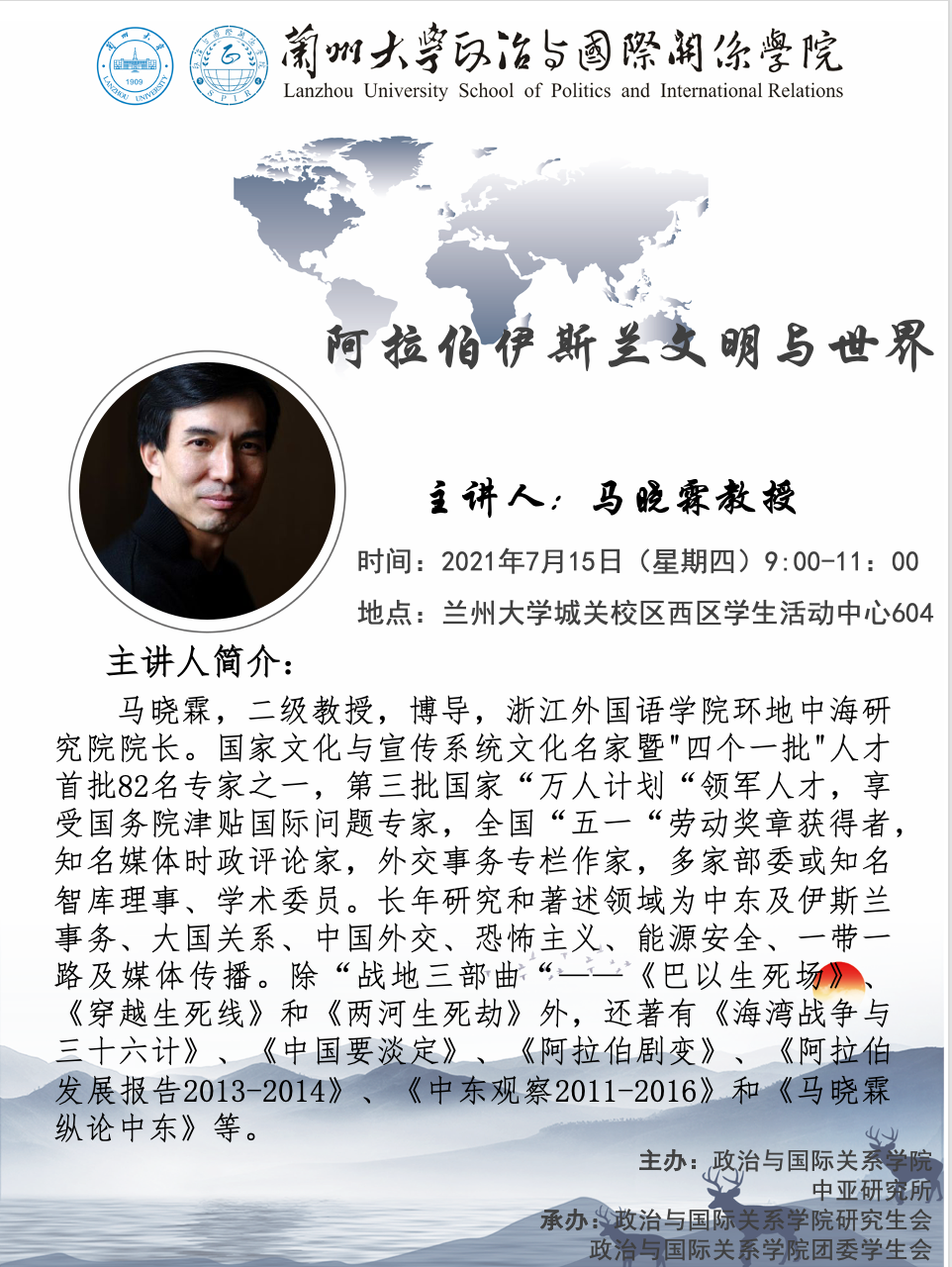 应笔趣阁 、笔趣阁 中亚研究所邀请,浙江外国语学院环地中海研究院院长马晓霖教授为我校师生做学术讲座。欢迎广大师生届时参加!
