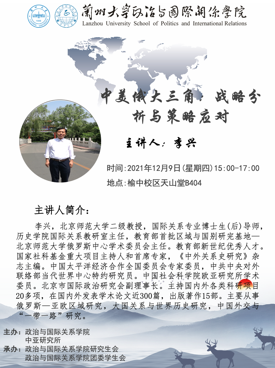 应笔趣阁 、笔趣阁 中亚研究所邀请,北京师范大学二级教授李兴为我校师生做学术讲座。欢迎广大师生届时参加!
