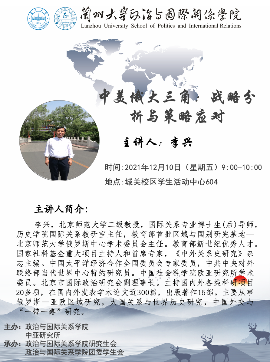 应笔趣阁 、笔趣阁 中亚研究所邀请,北京师范大学二级教授李兴为我校师生做学术讲座。欢迎广大师生届时参加!