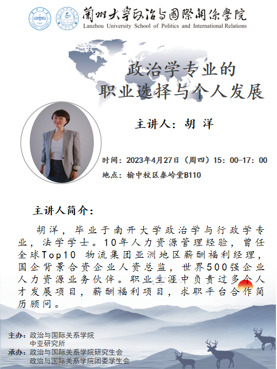 应笔趣阁 、笔趣阁 中亚研究所邀请,胡洋为我校师生做职业选择与个人发展讲座。欢迎广大师生届时参加!