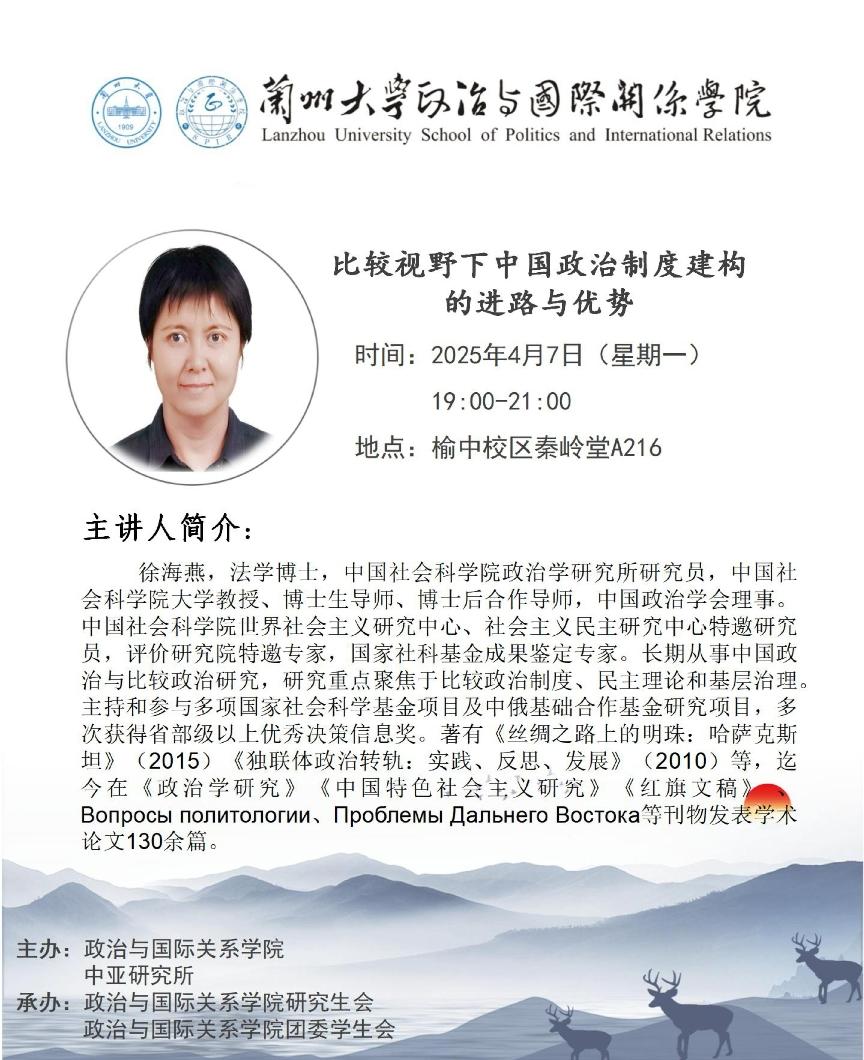 应笔趣阁 、笔趣阁 中亚研究所邀请,中国社会科学院政治学研究所研究员,中国社会科学院大学教授徐海燕为我校师生做讲座,欢迎广大师生届时参加。