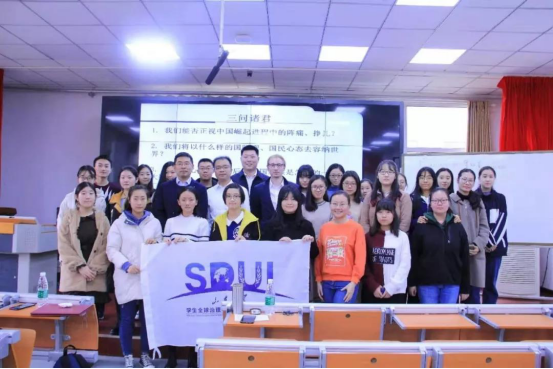 On the morning of November 24th, Professor Chen Xiaoding was invited to visit School of Foreign Languages of Shandong Universityand delivered a speech on the theme of“A Century of International Relations: Exploring the Way of Human Existence”. Professor Chen accepted an appointment as the tutor for student career development and consultant expert for training and promotion of talents in international organizations of Shandong University. Liu Hongdong,Deputy Dean of the School of Foreign Languages presided over the event, and students from the school attended the lecture.