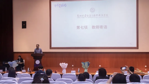 Deng Shiqin, representative of graduate students, and Wang Haoyu, representative of undergraduate students, delivered speeches respectively. The two students reminisce deeply about their experience during their study in LAN University, and express their gratitude to the college and teachers for their careful cultivation and instruction, and also send their blessings for the future development of the school and the College. Deng Shiqin mentioned that the three years of uninterrupted Luming Lecture Hall, the English Cup that can compete on the same stage, the Eurasian Research Forum, the Double-North Forum that can broaden their horizons, the reading club that enlighten academic wisdom, and the Youheng translation that explores the academic frontier not only build a platform for everyone to communicate and show themselves, but also bring opportunities and wisdom to everyone. Using the phrase "The development of things often has a system effect that is difficult to predict", Wang Haoyu encouraged the students to face the environment with a calm and humble attitude, maintain a more open and inclusive attitude to carry out sincere, free and mutual respect communication actions, and observe the world from a macro and broad political perspective. Personal development is not as important as national development.