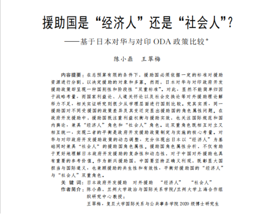 Abstract: Faced with budget constraints,donor states must make decisions regarding how to allocate limited aid funds across target countries. There are clearly "double standards" at play over time and across countries vis-à-vis Japan's official development assistance(ODA)polities towards China and India. Academic studies have rarely involved cross country empirical research on this topic. In this regard,the differences and changes with respect to how a donor country determines policy towards targeted recipient states are colored by the characteristics of the roles that donor states take on. In granting ODA,,donor states consider both their interests as well as aid effectiveness,while also considering international norms and their domestic audience-thus featuring the characteristics of both economic actors as well as social actors. The adjustments that Japan has made vis-à-vis its ODA policies towards China and India respectively offer an excellent example of how its role as an economic actor was further mediated by its role as a social actor.