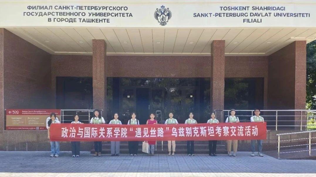 师生应乌兹别克斯坦丝绸之路创新发展研究院邀请,组成“遇见丝路”专题训练营赴乌兹别克斯坦开展实地考察交流。访学期间,训练营师生先后走访了乌兹别克斯坦国立东方大学孔子学院、乌兹别克斯坦丝绸之路旅游大学,并与当地师生进行了深入交流,圆满完成了各项既定任务。