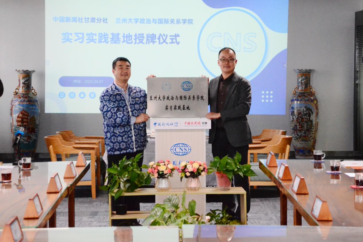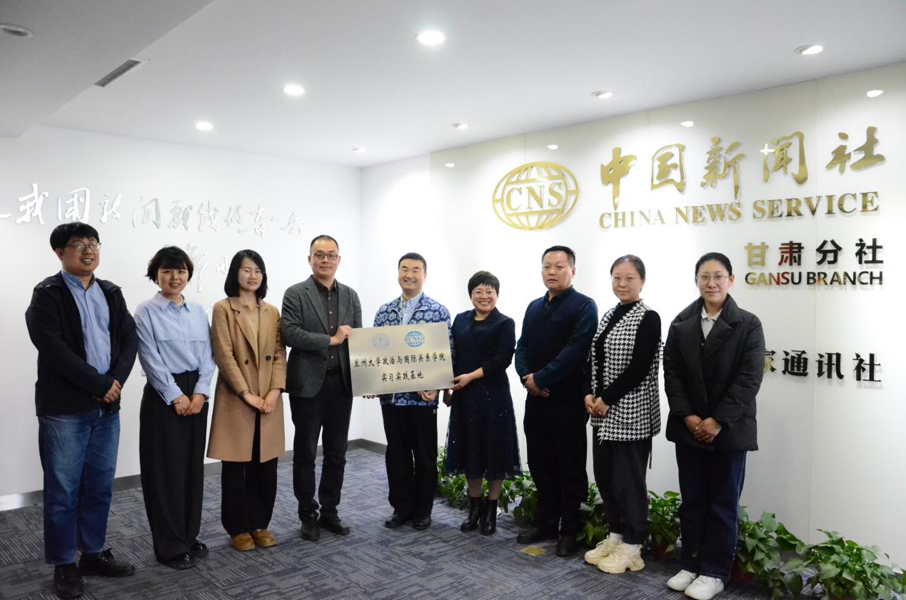 实习实践基地挂牌仪式在中国新闻社甘肃分社隆重举行。中国新闻社甘肃分社社长殷春永、甘肃分社采编中心主任丁思、中新社国际传播集团甘肃分公司总经理南如卓玛等中层干部,院党委书记常虹、院长朱永彪、研究生辅导员雷环瑞和本科生辅导员田歌参加仪式。